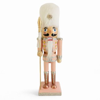 Bring a modern, boutique-friendly soldier into your Nutcracker assortment with this pink, gold, and white color story. The tall faux-fur hat and metallic spear create strong display presence while the 10 inch size keeps it easy to merchandise in tight spaces and gift tables.